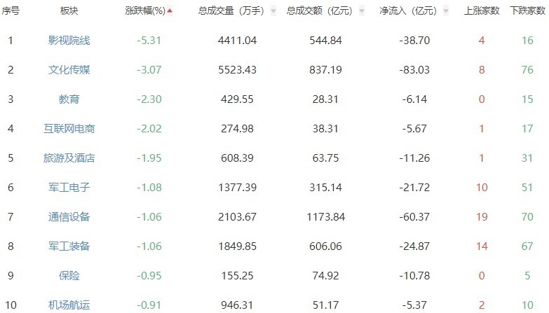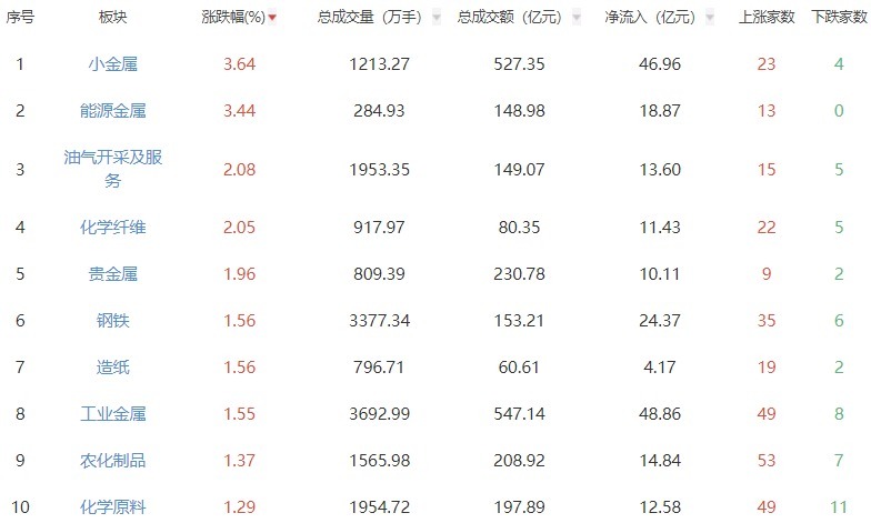 板块方面,小金属、动力金属、油气设备及管事等板块涨幅居前,影视院线、文化传媒、锤真金不怕火等板块跌幅居前。