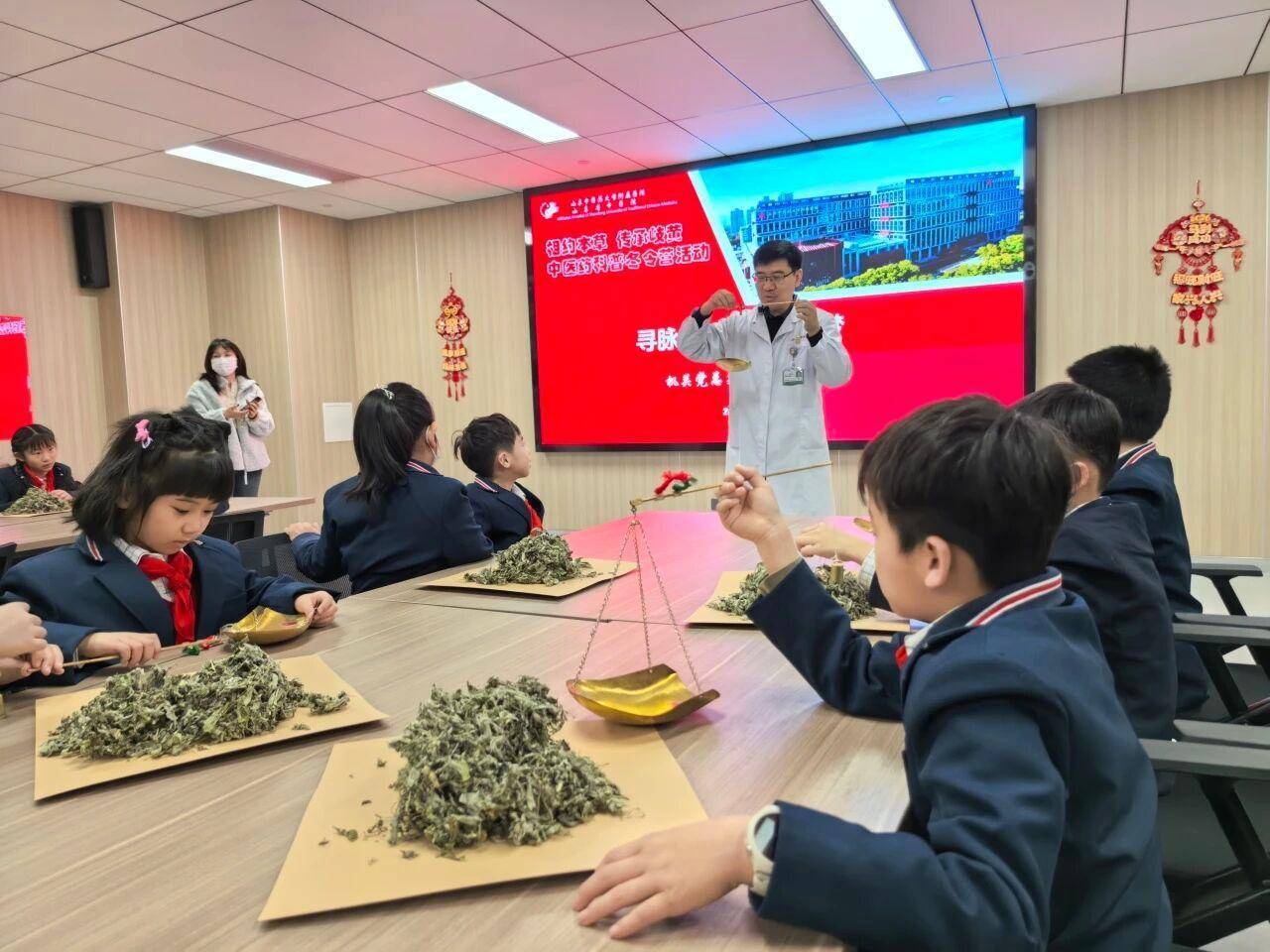在科普课堂上,孩子们堤防凝听中医药知识,随后还亲手体验了用传统戥子称量草药的经由,在践诺中感受中医药的严谨与魔力。