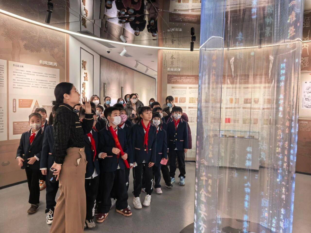 在中药标本展示区,队员们在药师的携带下清晰了谷精草、当归、卷柏等多种中草药,了解了它们的花样与功效。