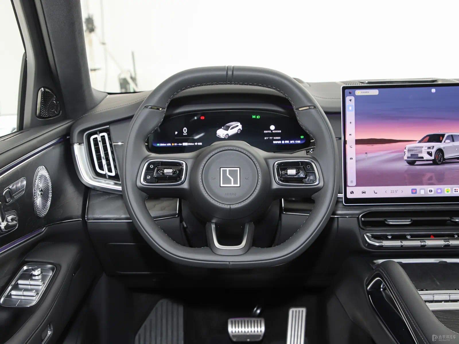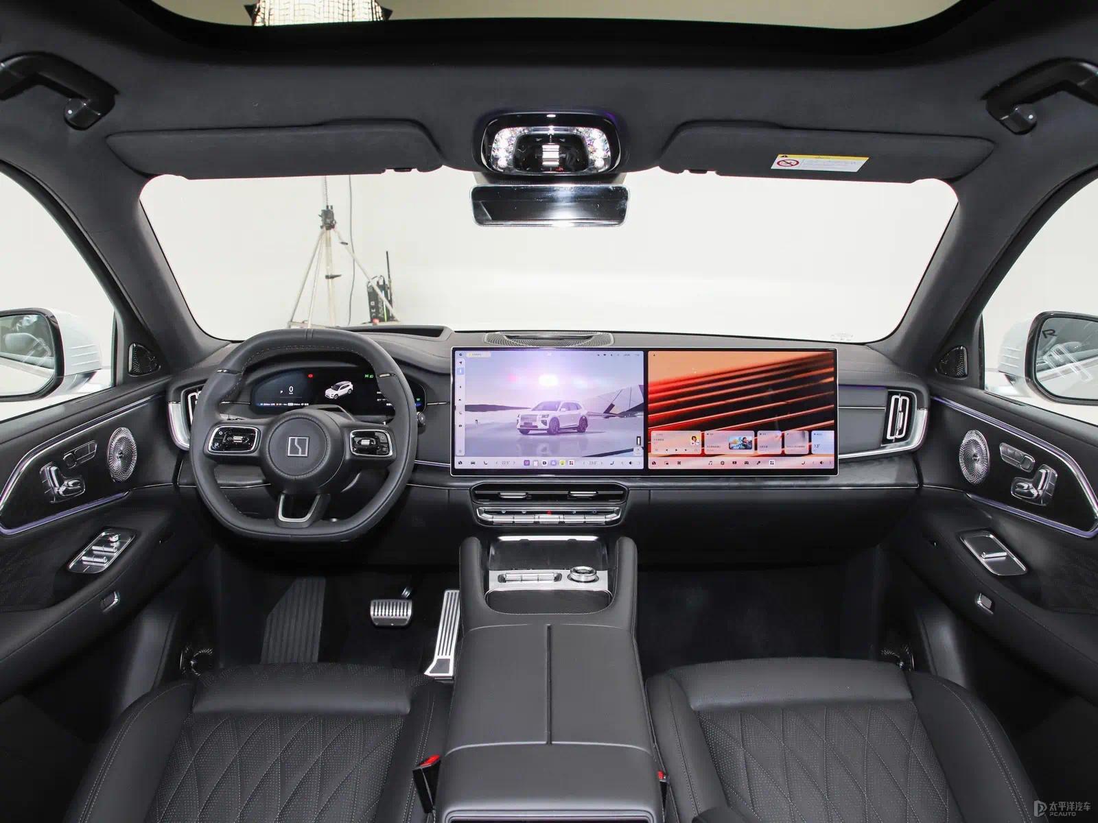 能源系统方面,车型搭载三擎能源组合,包括2.0T发动机输出205kW 、 前电机和后电机(永诀输出290kW和370kW),酿成 “三擎十二模” 能源模式,可证实车速、加快度、电板电量及驾驶意图,智能切换纯电、串联、并联、直驱、动能回收共5大类12种能源模式。