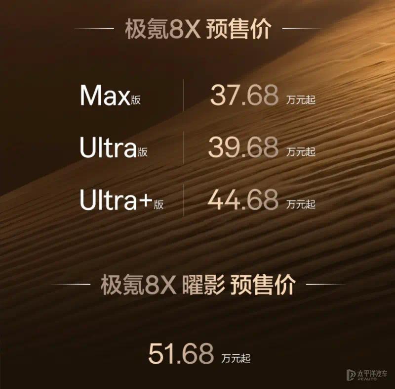 【太平洋汽车 新车频谈】3月16日,极氪汽车旗下全新高性能旗舰SUV——极氪8X在上海召开本领发布会并同步开启预售体育游戏app平台,新车共推出4款车型,预售价区间为37.68-51.68万元。