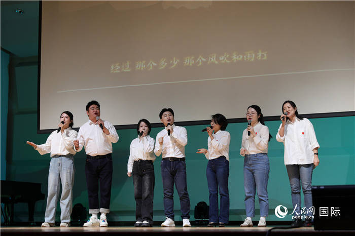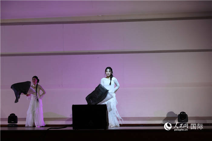 在韩中国粹东谈主学者在行动上扮演的文艺节目。东谈主民网记者 莽九晨摄